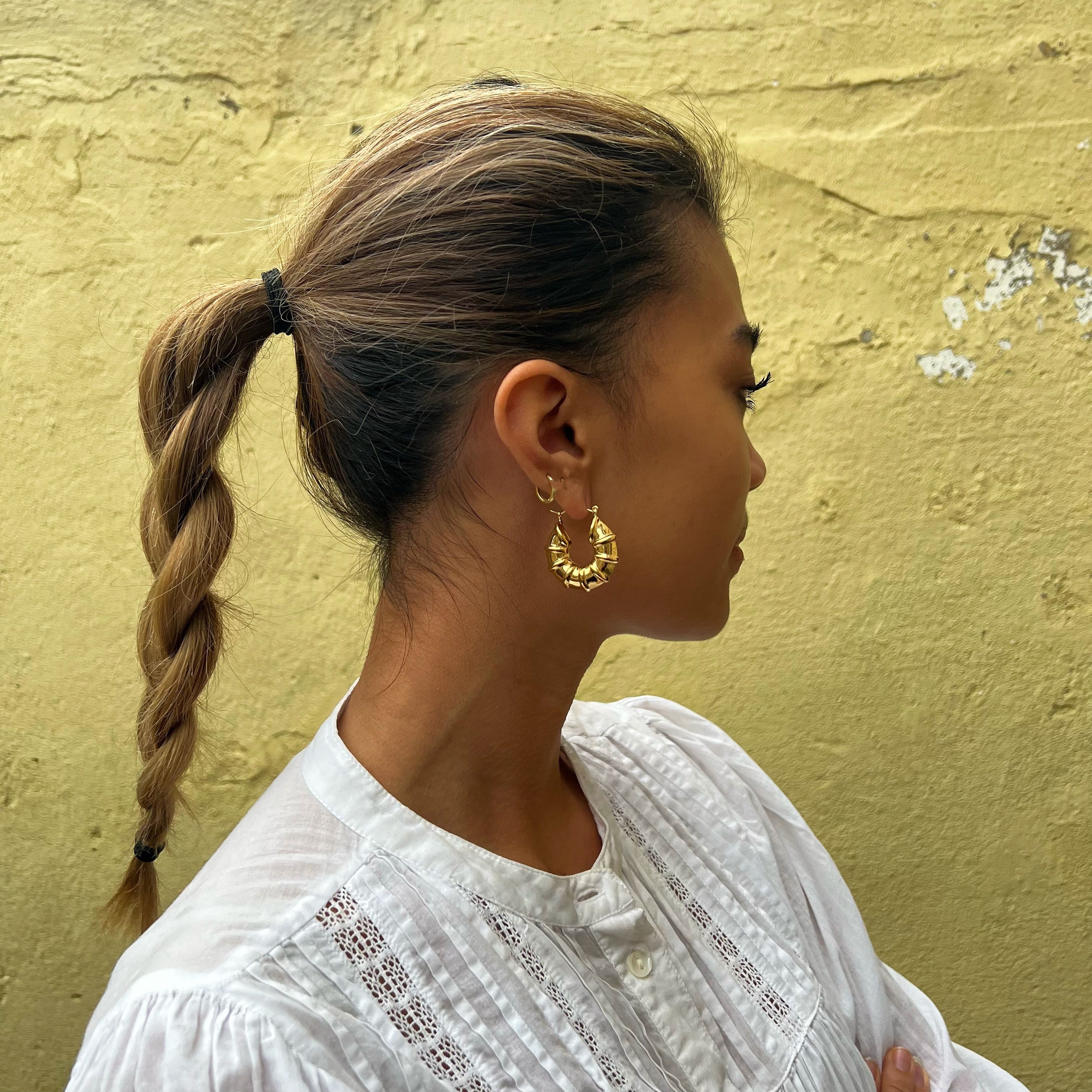 With our ROSALIE hoops, you will undoubtedly make a statement. The sturdy shape of the earrings helps to spice up a completely simple and classic look. The earring's fine details also make it remarkable.