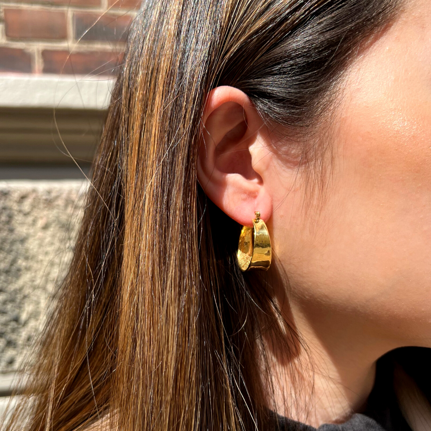 Our AMARA hoops are raw and chunky, which alone can spice up a simple everyday look. AMARA hoops have a perfect size to be alone, but can easily be combined with other earrings.